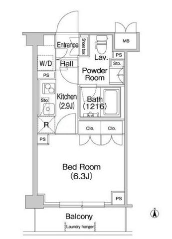 1K ( K 2.9帖 洋室 6.3帖 )