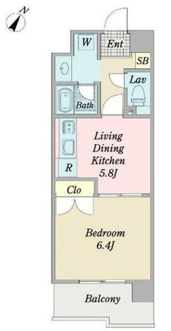 1DK ( 洋室 6.4帖 DK 5.8帖 )