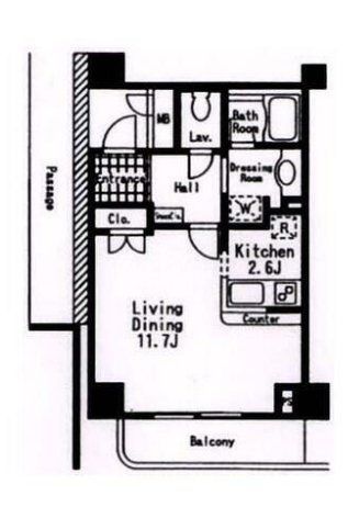1K ( 洋室 11.7帖 K 2.6帖 )