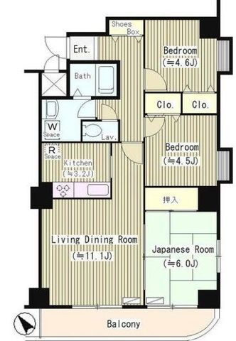 3LDK ( LDK 14.3帖 洋室 4.6帖 洋室 4.5帖 和室 6.0帖 )