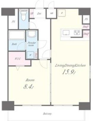1LDK ( 洋室 8.4帖 LDK 15.9帖 )