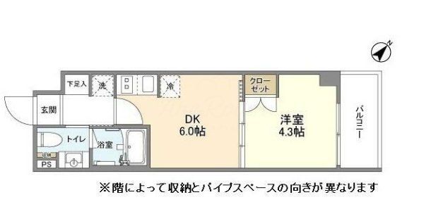 1DK ( 洋室 4.3帖 DK 6.0帖 )
