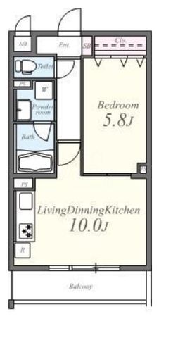 1LDK ( LDK 10.0帖 洋室 5.8帖 )