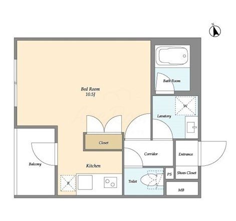 1K ( 洋室 8.2帖 K 2.3帖 )